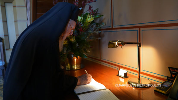 Ο Παναγιώτατος κ.κ. Βαρθολομαίος, καθώς και οι συνοδεύοντες αυτόν Ιεράρχες, υπέγραψαν στο βιβλίο επισκεπτών του Κυβερνητικού Μεγάρου.