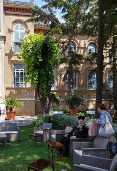 Κατόπιν, ο Παναγιώτατος και οι επισκέπτες είχαν την ευκαιρία να απολαύσουν τους κατάφυτους κήπους της Σχολής.