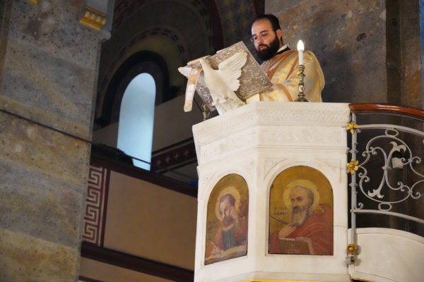 Τον θείο λόγο κήρυξε ο εορτάζων τα ονομαστήριά του, Μ. Εκκλησιάρχης κ. Αέτιος, Διευθυντής του Ιδιαιτέρου Πατριαρχικού Γραφείου.