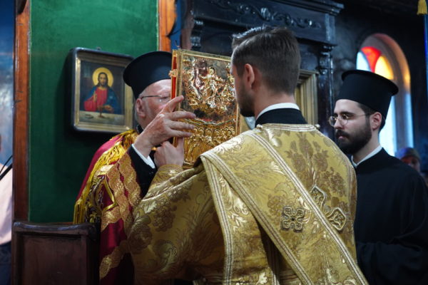 Ο Οικουμενικός Πατριάρχης συνεχάρη τον δραστήριο Ιερατικώς Προϊστάμενο της Παροικίας, Πανοσιολ. Μ. Ιεροκήρυκα κ. Πανάρετο, αλλά και τους συνεφημερίους του Πανοσιολ. Αρχιμανδρίτη κ. Βίκτωρα Kopuşçu και Αιδεσιμ. π. Βαρθολομαίο, και όλα τα μέλη της παροικίας για το επιτελούμενο έργο, ενώ εξέφρασε την Πατριαρχική ευαρέσκειά του για τα έργα συντήρησης των αγιογραφιών που πραγματοποιούνται με τη φροντίδα της Ι. Μονής Βατοπαιδίου, αλλά και προς τον Εντιμολ. Άρχοντα Μ. Χαρτοφύλακα κ. Παντελεήμονα Βίγκα για τη μέριμνα που επιδεικνύει για τα θέματα του Μετοχίου.