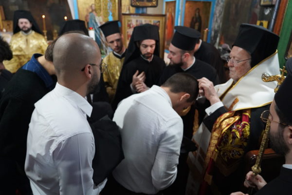 Στο τέλος της θείας Λειτουργίας ο Παναγιώτατος χειροθέτησε σε Αναγνώστες πέντε νέους της Κοινότητας.