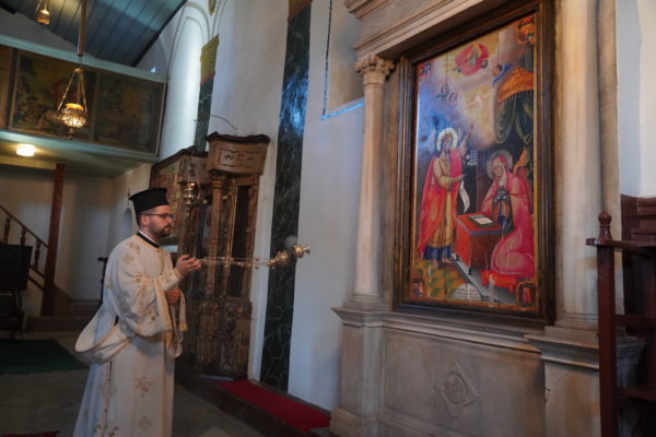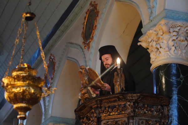 Τον θείο λόγο κήρυξε ο Πανοσιολογιώτατος Μ. Εκκλησιάρχης κ. Αέτιος, Διευθυντής του Ιδιαιτέρου Πατριαρχικού Γραφείου. Αναφερόμενος στην ιστορία αυτού του Ιερού Ναού της περιοχής του Μπαλατά, ο οποίος για μικρό χρονικό διάστημα, κατά τα τέλη του 16ου αιώνα, φιλοξένησε τις υπηρεσίες του Οικουμενικού Πατριαρχείου, πριν αυτό μετακινηθεί στη σημερινή του θέση, στο Φανάρι, ο Πατριάρχης είπε: