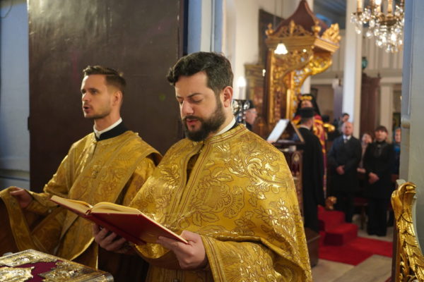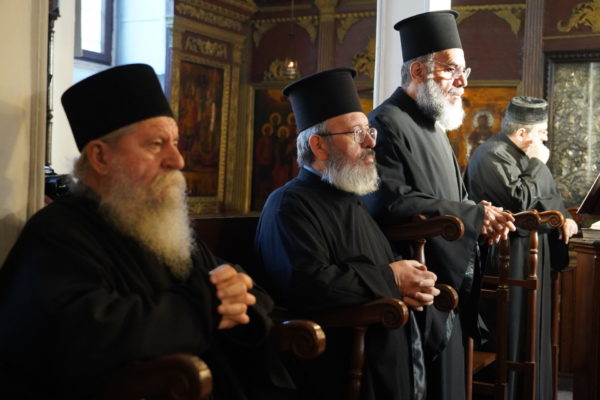 Καλωσόρισε δε εγκαρδίως τον Σεβασμιώτατο Μητροπολίτη Σύμης κ. Χρυσόστομο και τον προσφάτως χειροτονηθέντα βοηθό του Θεοφιλέστατο Επίσκοπο Ροδοστόλου κ. Αντώνιο, “εις τον οποίον ευχόμεθα θεοτερπή και καλλίκαρπον αρχιερατικήν διακονίαν προς ενίσχυσιν και επιστηριγμόν του ποιμαντικού έργου της ακριτικής αυτής Επαρχίας της Μητρός Εκκλησίας”, καθώς και την αντιπροσωπεία της Ιεράς Πατριαρχικής και Σταυροπηγιακής Μονής Αγίου Διονυσίου του εν Ολύμπω, υπό τον Ηγούμενο αυτής Πανοσιολ. Αρχιμανδρίτη κ. Μάξιμο, “ο οποίος έρχεται ανελλιπώς κάθε χρόνο τέτοιες χρονιάρες ημέρες διά να λάβη την ευχήν της Μητρός Εκκλησίας διά το νέον έτος και μας δίνει πολλή χαρά!”