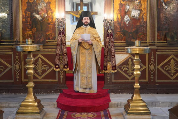 Με αυτάς τας επικαίρους σκέψεις ηθελήσαμεν να χαιρετίσωμεν πατρικώς την σημερινήν σύναξίν μας εν τω ονόματι του Κυρίου. Οι ευχαριστιακές συνάξεις μας κατά τας Πατριαρχικάς χοροστασίας εις διαφόρους Κοινότητας της καθ᾽ ημάς Αγιωτάτης Αρχιεπισκοπής ενισχύουν την πίστιν πάντων ημών των συμπροσευχομένων και αποτελούν αφορμήν χαράς και εγκαυχήσεως δι᾽ ημάς προσωπικώς επί τη παρεχομένη εις ημάς εκάστοτε ευκαιρία επικοινωνίας με το προσφιλέστατον ενταύθα ποίμνιόν μας.”
