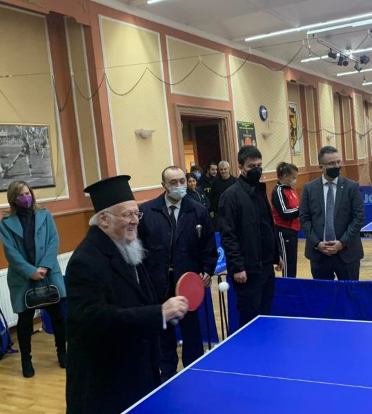 Κατά την  διάρκεια την παραμονής του στους χώρους του ιστορικού συλλόγου της Ομογένειας ο Παναγιώτατος συνομίλησε με τους παρεβρισκόμενους και το ευχάριστο κλίμα ήρθε να ολοκληρώσει ένα παιχνίδι Ping-Pong!
