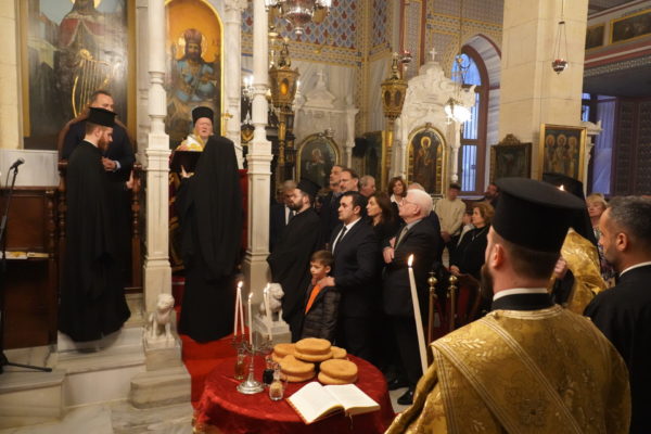 Στο τέλος της Ιεράς Ακολουθίας ο Οικουμενικός Πατριάρχης τέλεσε τρισάγιο υπέρ αναπαύσεως των ψυχών των αειμνήστων διδασκάλων και αποφοίτων της ιστορικής Αστικής Σχολής Γαλατά.