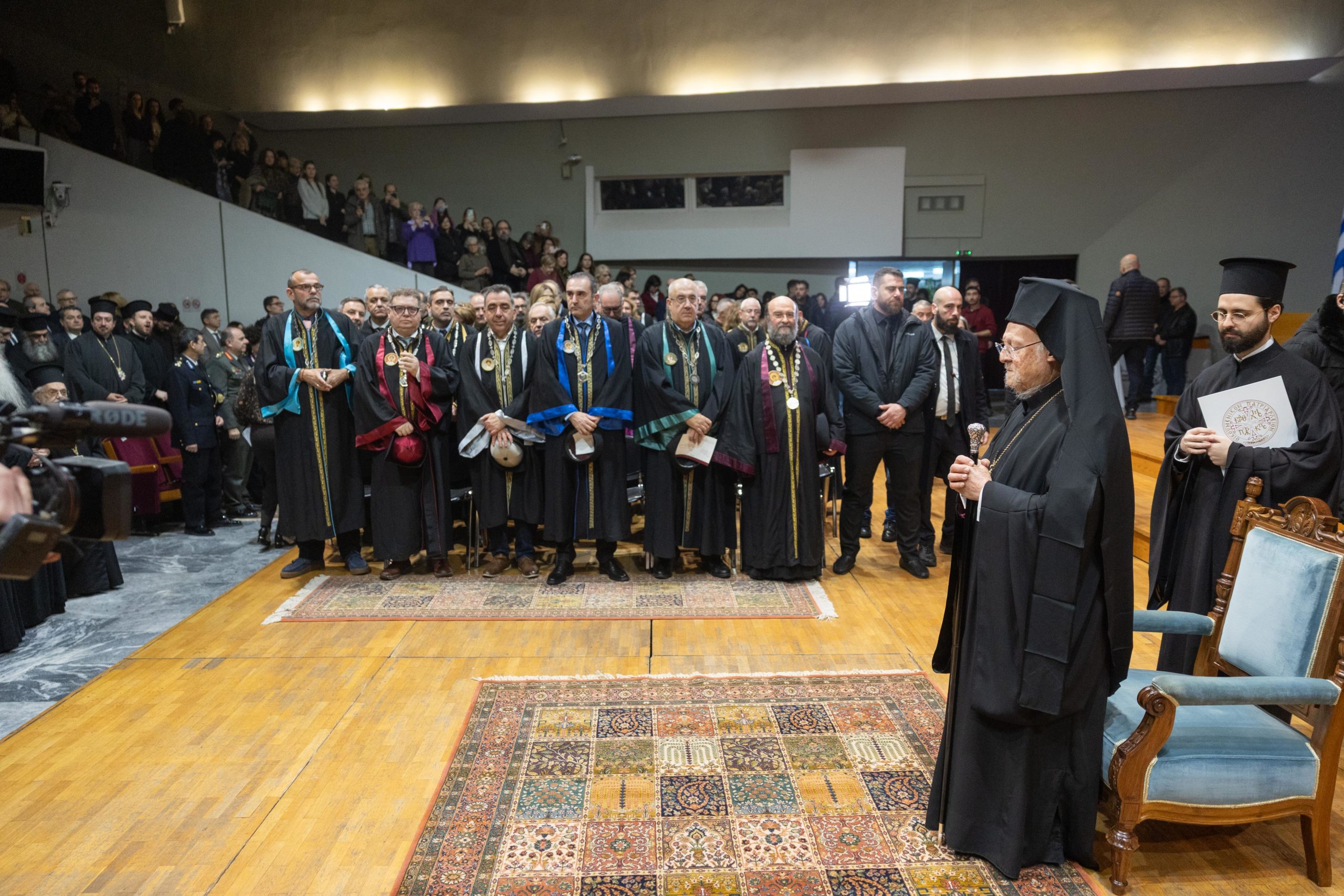 Νωρίτερα, στο Β’ Αμφιθέατρο της Θεολογικής Σχολής Α.Π.Θ. ο Οικουμενικός Πατριάρχης κ.κ. Βαρθολομαίος παρέστη στην τελετή ίδρυσης της επώνυμης Έδρας, με τίτλο: «Μητροπολίτης Δράμας Παύλος – Εκκλησιαστική Ιστορία και Πολιτισμός του Ελληνισμού της Ανατολής (11ος-20ός αιώνας)».