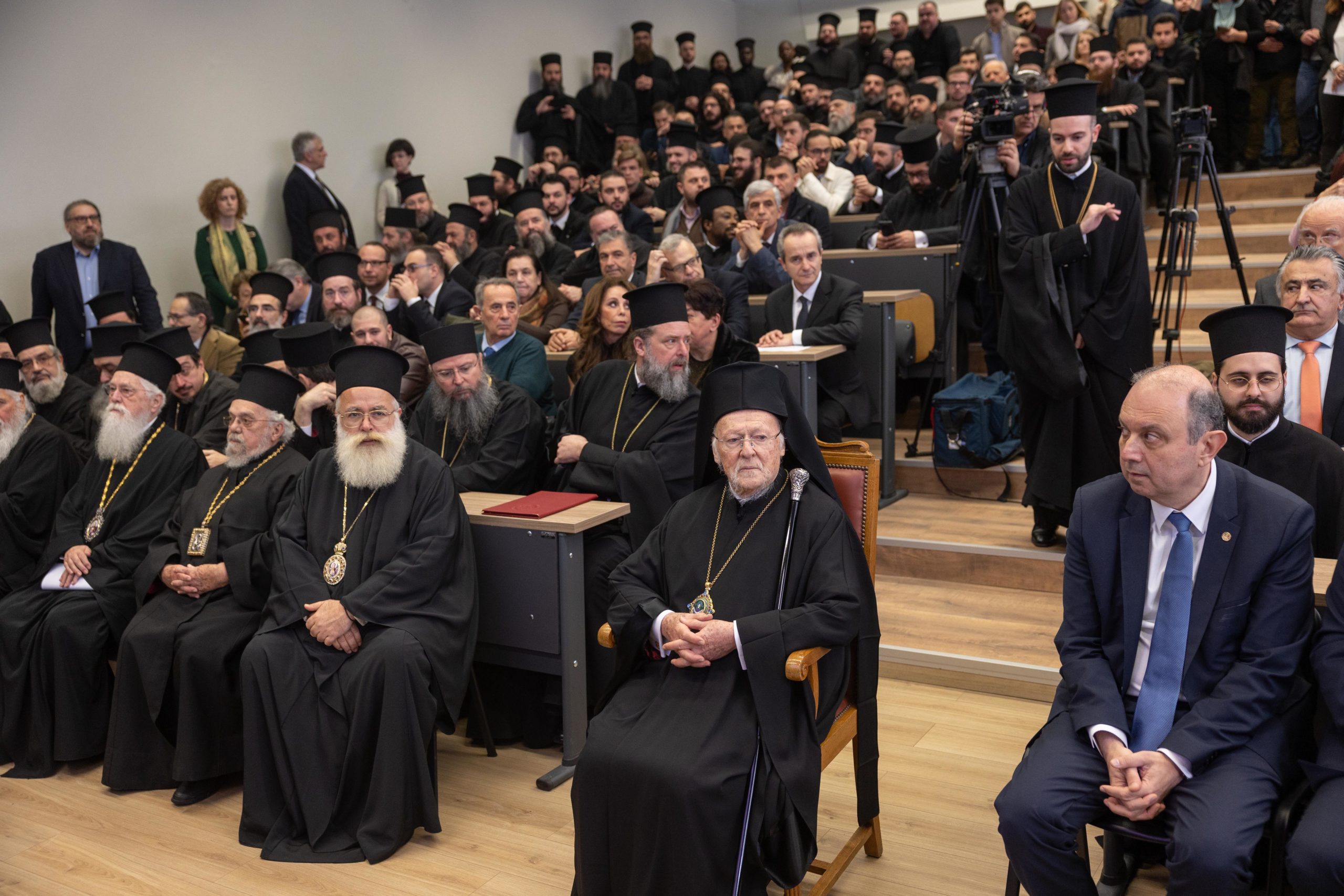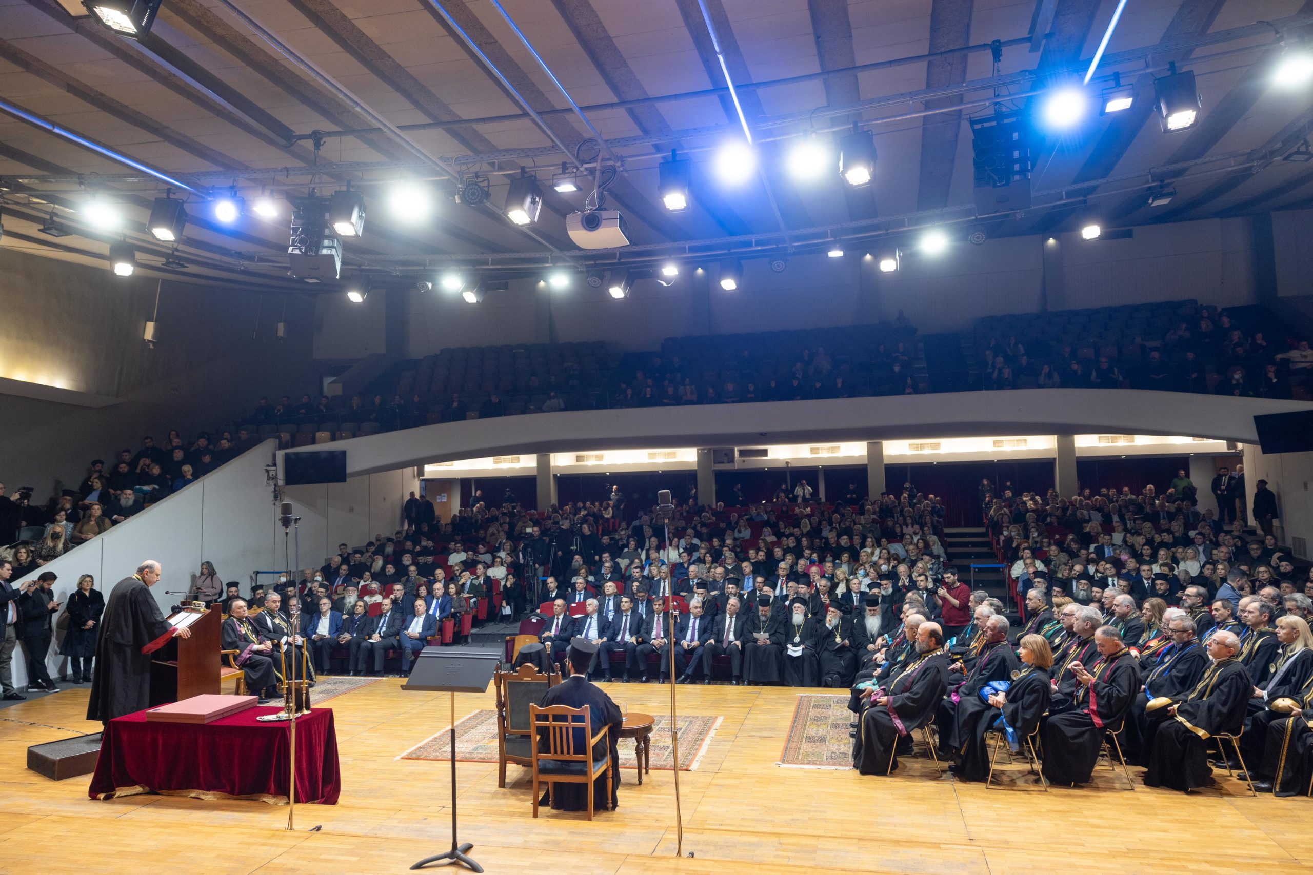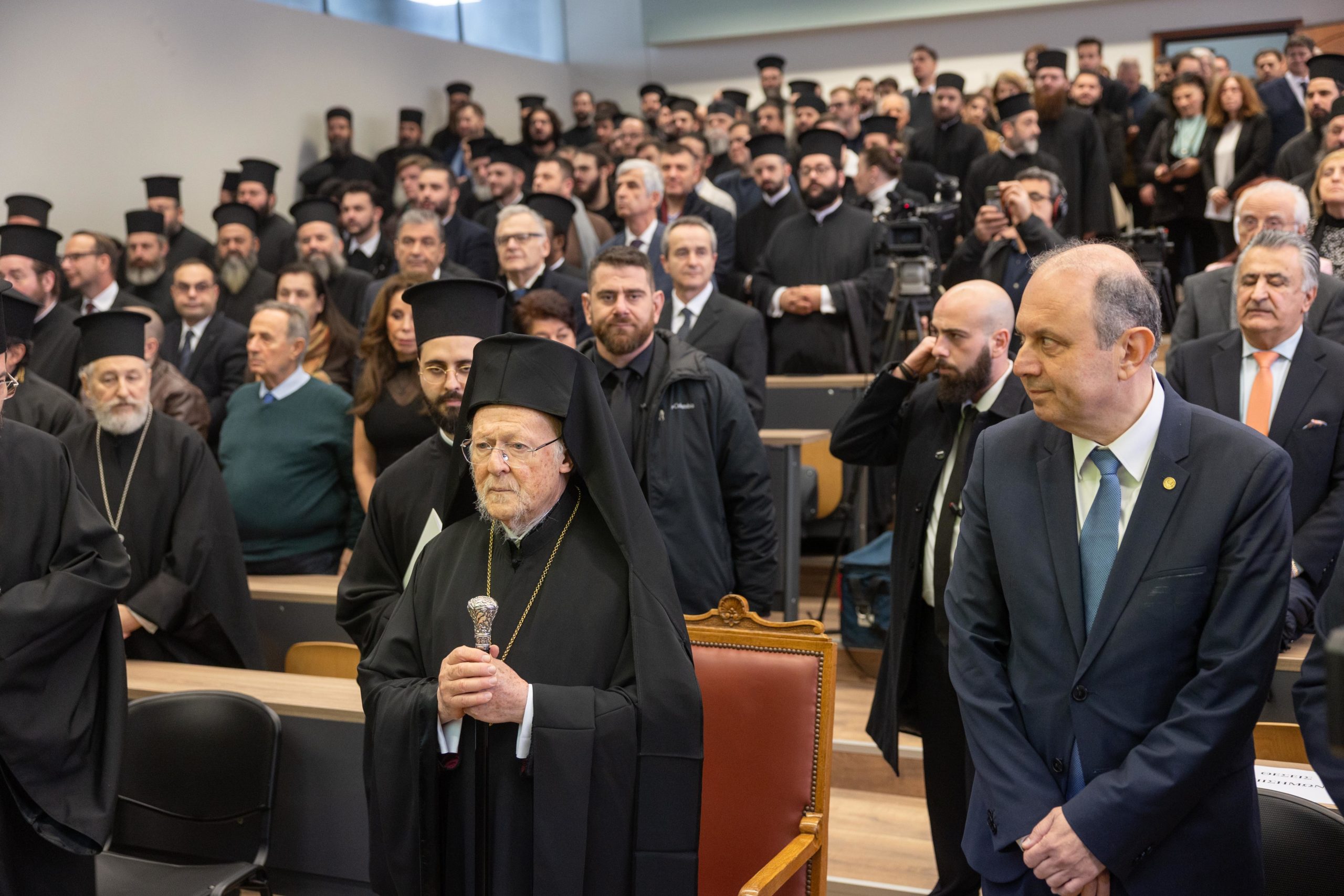 Νωρίτερα, στο Β’ Αμφιθέατρο της Θεολογικής Σχολής Α.Π.Θ. ο Οικουμενικός Πατριάρχης κ.κ. Βαρθολομαίος παρέστη στην τελετή ίδρυσης της επώνυμης Έδρας, με τίτλο: «Μητροπολίτης Δράμας Παύλος – Εκκλησιαστική Ιστορία και Πολιτισμός του Ελληνισμού της Ανατολής (11ος-20ός αιώνας)».