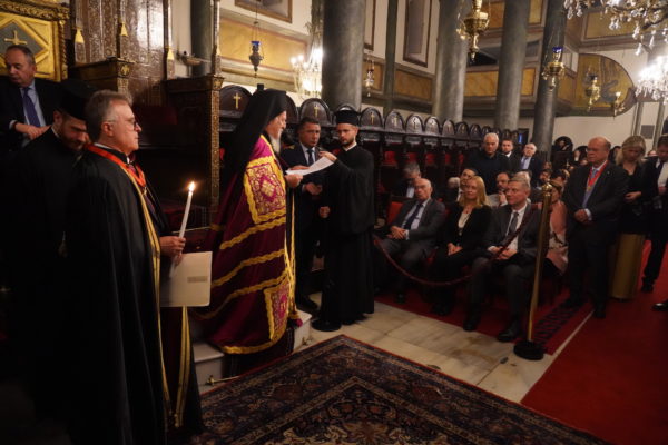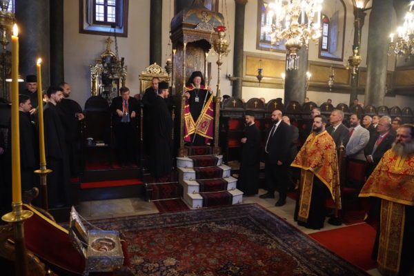 Τους ευχαριστούμεν θερμώς διά την αξιέπαινον αυτήν πρωτοβουλίαν τους και τους ευχόμεθα το «Ως ευ παρέστητε» εν Φαναρίω, όπως και εις όλους εσάς, αδελφοί και τέκνα προσφιλέστατα. Η έλευσίς σας ενταύθα, η παρουσία πάντων υμών των συμπροσευχομένων και συναγαλλομένων, μας χαροποιεί, μαρτυρεί το εύρος της ευθύνης της Μεγάλης Εκκλησίας και ενισχύει μεγάλως ημάς τους φυλάσσοντας εις το Ιερόν Κέντρον της Ορθοδοξίας τα όσια και ιερά της Εκκλησίας και του Γένους.