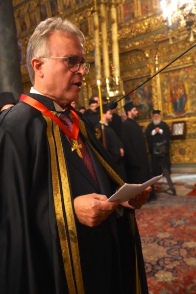 Στην αντιφώνησή του ο νέος Άρχων εξέφρασε την ευγνωμοσύνη του προς τον Παναγιώτατο για τη μεγάλη τιμή που επεφύλαξε προς το πρόσωπό του.