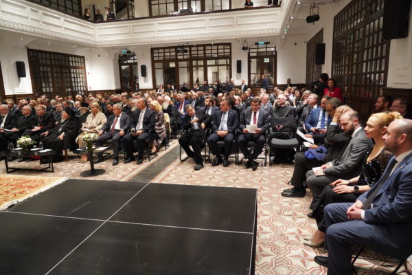 Στη συνέχεια, με αφορμή την Θρονική εορτή του Οικουμενικού Πατριαρχείου, παρετέθη δεξίωση στο Πολιτιστικό Κέντρο της Ομογενείας, στην παλαιά Αστική Σχολή Γαλατά.
