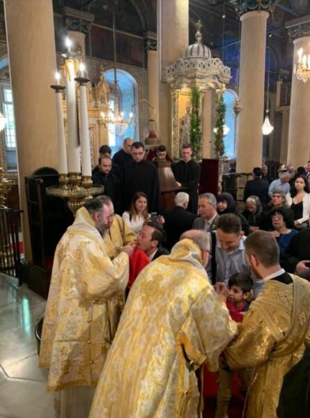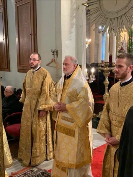 Ἐκκλησιάσθησαν οἱ Σεβ. Μητροπολῖται Γέρων Νικαίας κ. Κωνσταντῖνος, Γέρων Δέρκων κ. Ἀπόστολος, Γέρων Πριγκηποννήσων κ. Δημήτριος, Βρυούλων κ. Παντελεήμων, Μυριοφύτου καί Περιστάσεως κ. Εἰρηναῖος, Μύρων κ. Χρυσόστομος καί Κυδωνιῶν κ. Ἀθηναγόρας, ὁ Σεβ. Ἀρχιεπίσκοπος Ἀνθηδῶνος κ. Νεκτάριος, Ἐπί-τροπος τοῦ Παναγίου Τάφου ἐν τῇ Πόλει, Ἄρχοντες Ὀφφικιάλιοι, ἡ Εὐγεν. κ. Δανάη Βασιλάκη, Πρόξενος τῆς Ἑλλάδος ἐνταῦθα, ὁ Ἐντιμ. κ. Oleksandr Gaman, Γεν. Πρόξενος τῆς Οὐκρανίας ἐν τῇ Πόλει, καί πιστοί ἐκ τῆς Πόλεως, ἐξ Ἑλλάδος, ἐξ Ἀμερικῆς, ἐκ Πορτογαλίας, ἐκ Βραζιλίας, ἐξ Αὐστραλίας καί ἐξ Οὐκρανίας.