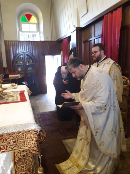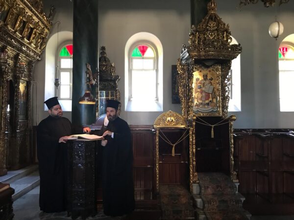 Σήμερα, Κυριακή ιβ΄ Ματθαίου, τελέστηκε στο ναΰδριο της Σχολής η Θεία Λειτουργία υπό του Πανοσιολ. Αρχιγραμματέως της Συνόδου κ. Ιωακείμ και του Πανοσιολ. Υπογραμματέως αυτής κ. Γρηγορίου, συμπροσευχομένης της Α.Θ.Π., του Οικουμενικού Πατριάρχου και των συνοδικών ιεραρχών, του Σεβ. Αρχιεπισκόπου Ανθηδώνος κ. Νεκταρίου, Επιτρόπου του Παναγίου Τάφου ενταύθα και του Καθηγουμένου, Θεοφιλ. Επισκόπου Αραβισσού κ. Κασσιανού.