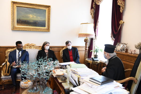Τον κ. Πρέσβη συνόδευαν η Γενική Πρόξενος των ΗΠΑ στην Πόλη Ευγεν. κ.Daria Darnell, και ο Σύμβουλος κ. Kevin Moss. Στη συνάντηση παρέστησαν ο Σεβ. Γέρων Χαλκηδόνος κ. Εμμανουήλ, ο Σεβ.Αμερικής κ. Ελπιδοφόρος και ο Πανοσιολ. Μ. Σύγκελλος κ. Ιάκωβος.