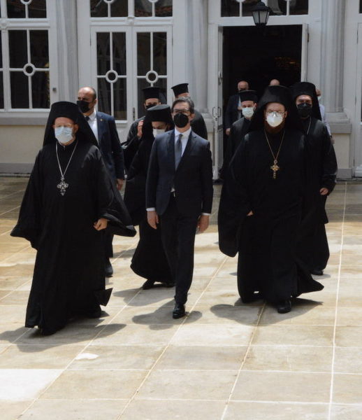 Ακολούθησε κατ’ ιδίαν συνάντηση του Παναγιωτάτου με τον Εξοχ. κ. Πρόεδρο, οι οποίοι αντάλλαξαν απόψεις για θέματα αμοιβαίου ενδιαφέροντος.