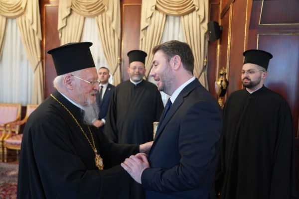 Η Α.Θ. Παναγιότης ο Οικουμενικός Πατριάρχης κ.κ. Βαρθολομαίος, δέχθηκε, σήμερα, 4 Ιανουαρίου 2024, τον Πρόεδρο του ΠΑΣΟΚ-Κινήματος Αλλαγής κ. Νικόλαο Ανδρουλάκη, με τη μητέρα του και συνεργάτες του.