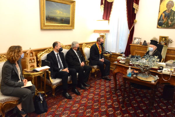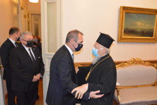 Η Α.Θ. Παναγιότης ο Οικουμενικός Πατριάρχης κ.κ. Βαρθολομαίος δέχθηκε χθες, Δευτέρα, 29 Νοεμβρίου 2021, τον Υφυπουργό Εξωτερικών της Ελλάδος κ. Ανδρέα Κατσανιώτη, εκπρόσωπο της Ελληνικής Κυβερνήσεως στην Θρονική εορτή του Οικουμενικού Πατριαρχείου, ο οποίος συνοδευόταν από τον κ. Ιωάννη Χρυσουλάκη, Ομότιμο Καθηγητή και Γενικό Γραμματέα Αποδήμου Ελληνισμού και Δημόσιας Διπλωματίας, την κ. Γεωργία Σουλτανοπούλου, Γενική Πρόξενο στην Πόλη, και τον κ. Χριστόδουλο Μαργαρίτη, Διευθυντή του Διπλωματικού Γραφείου του κ. Υφυπουργού.