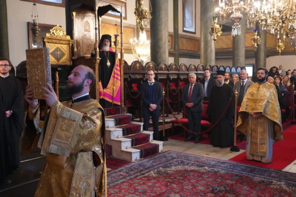 O Οικουμενικός Πατριάρχης κ.κ. Βαρθολομαίος παρέστη συμπροσευχόμενος στη Θεία Λειτουργία της Κυριακής, 3 Δεκεμβρίου 2023, κατά την οποία χοροστάτησε ο Σεβ. Μητροπολίτης Νικοπόλεως και Πρεβέζης κ. Χρυσόστομος.