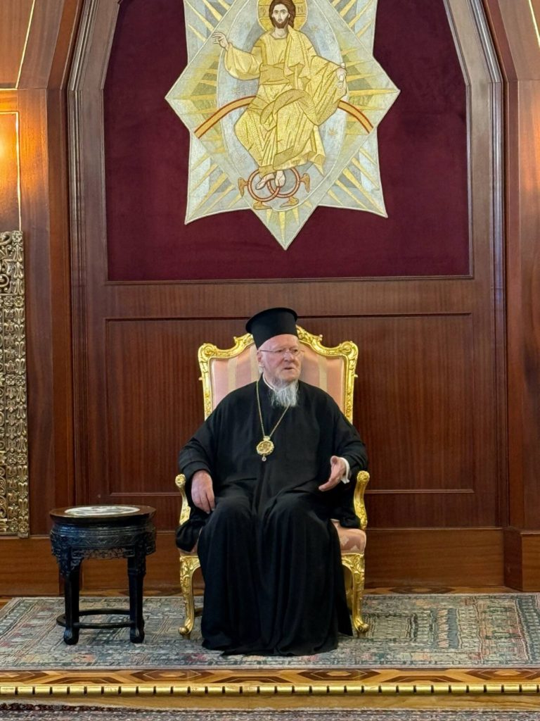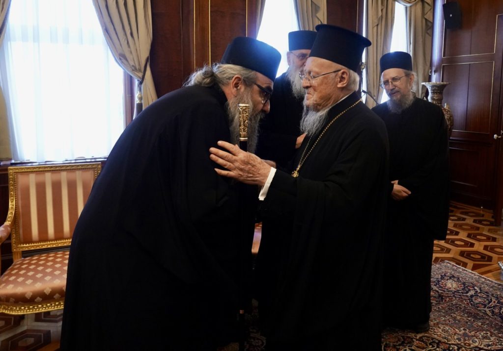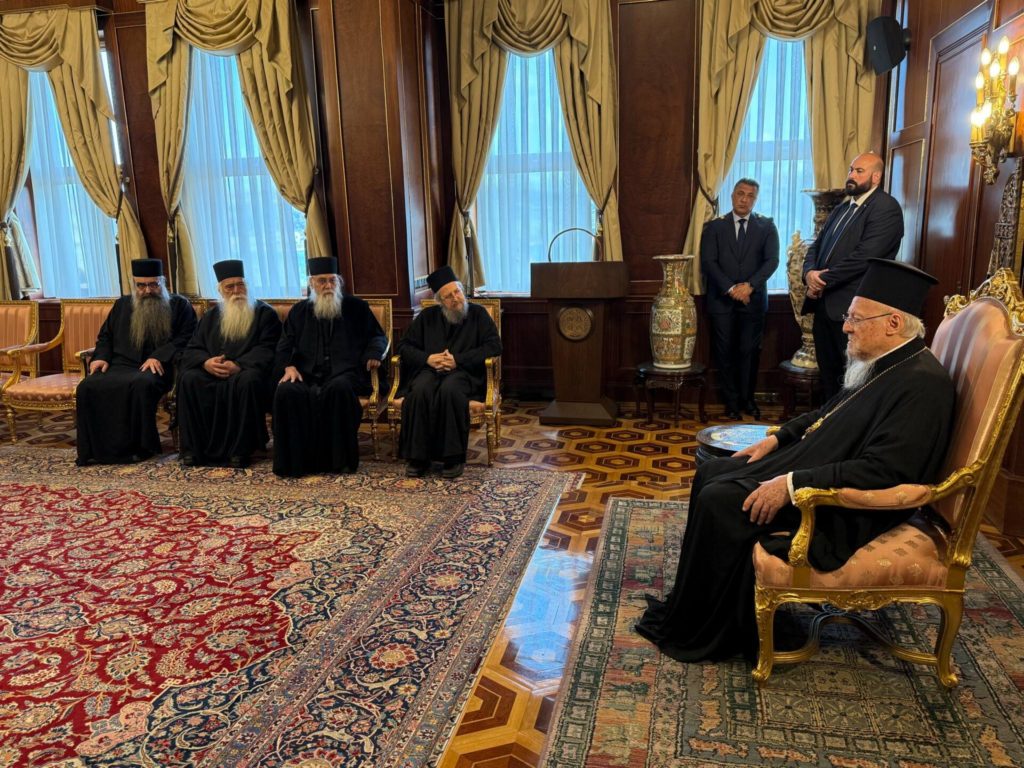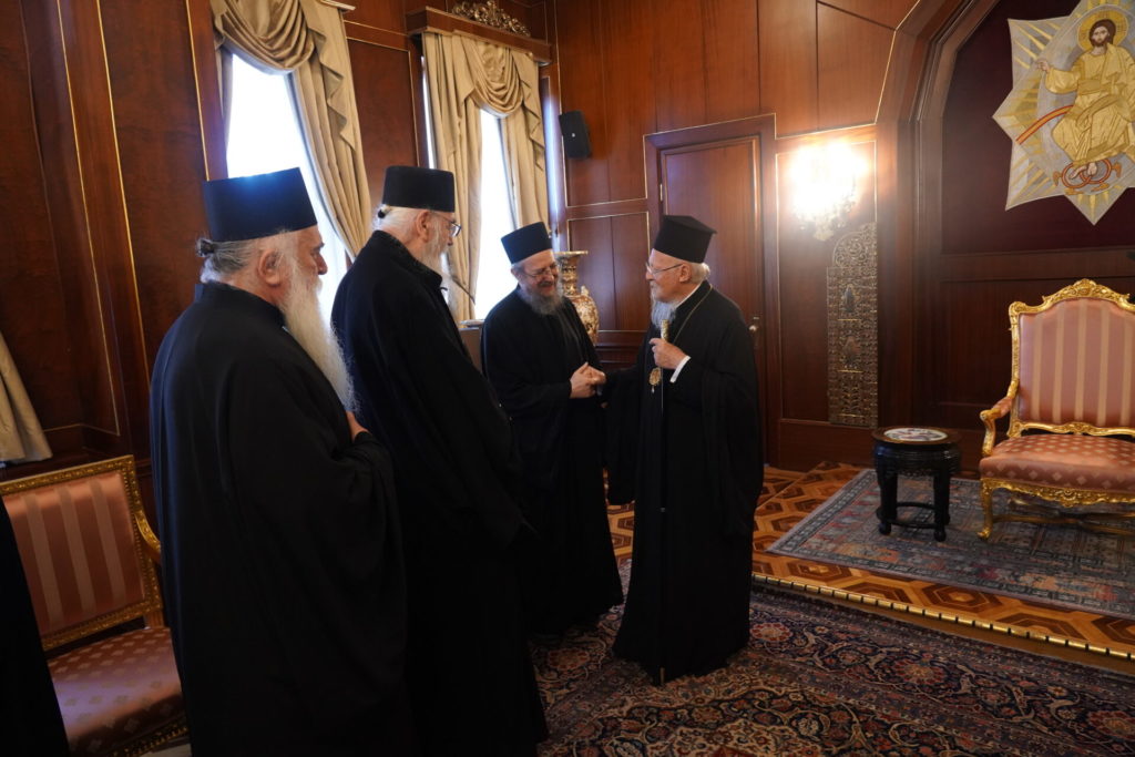 Η Α.Θ. Παναγιότης ο Οικουμενικός Πατριάρχης δέχθηκε σε ακρόαση τους Οσιωτ. Ιερομονάχους Ιερώνυμο Σιμωνοπετρίτη και Νικόδημο Αγιοπαυλίτη, μέλη της Εφορείας της Αθωνιάδας Σχολής, Γεράσιμο Αγιοπαυλίτη και Δαμασκηνό Καρεώτη, Εφημέριο της Αθωνιάδας, τους Ελλογιμ. κυρίους Γεώργιο Μεταλλίδη και Μιχαήλ Κεχαγιά, Διευθυντή και Καθηγητή της Σχολής αντίστοιχα, και όμιλο τελειοφοίτων μαθητών του ιστορικού εκπαιδευτικού Ιδρύματος.