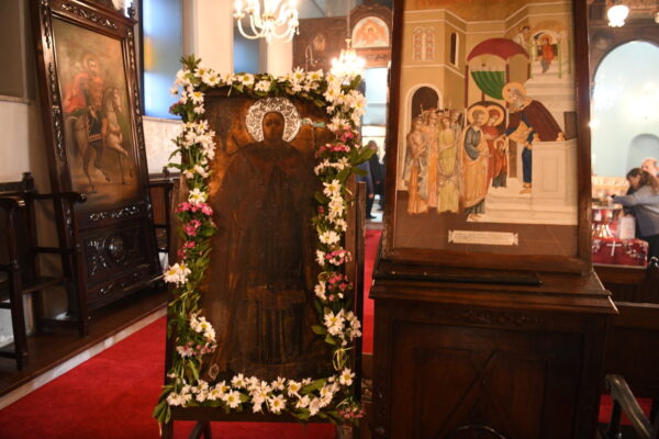 Στο τέλος της Θείας Λειτουργίας, ο Παναγιώτατος ευλόγησε τα κόλλυβα στη μνήμη του Αγίου και ο Μ.Ιεροκήρυξ Πανάρετος ανέγνωσε τον εξορκισμό του Αγίου Τρύφωνος που διαβάζεται, ανήμερα της σημερινής εορτής, σε κήπους και καλλιέργειες. Ακολούθως ο Παναγιώτατος τέλεσε τα θυρανοίξια του ανακαινισμένου Αγιάσματος του Ι.Ναού, όπου συντηρήθηκαν ιερές εικόνες και κειμήλια που διασώθηκαν από τις μεγάλες καταστροφές των τραγικών γεγονότων του Σεπτεμβρίου του έτους 1955.