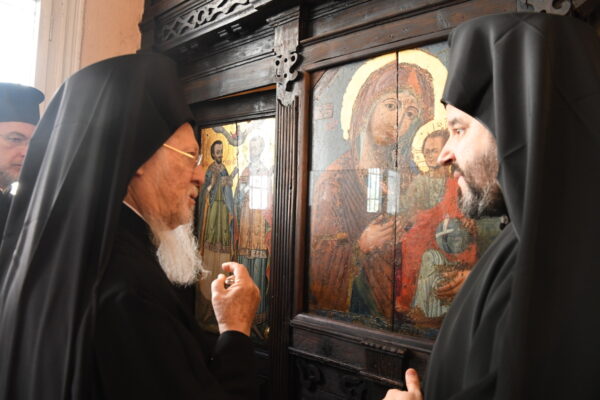 Εναποθέτουμε τις ελπίδες μας σε Αυτήν και προσευχόμαστε θερμά προς το Πανάγιο πρόσωπό της να προστατεύει πάντοτε τον ιερό αυτό Ναό της, την Πόλη της, τον Πατριάρχη του Γένους, ο οποίος νυχθημερόν και με μεγάλο αίσθημα πατρικής ευθύνης αγωνίζεται για την προβολή του Οικουμενικού Θρόνου, και κυρίως για την υπεράσπιση των δικαίων και των προνομίων αυτού. Έχετε Παναγιώτατε ως ασπίδα ακαταμάχητο την Παναγία την Βελιγραδινή και να γνωρίζετε ότι συμπαραστέκεται στον δίκαιο αγώνα σας εναντίον των αμφισβητούντων, μεταξύ των οποίων συγκαταλέγεται η αχάριστη Εκκλησία της Μόσχας, τον ρόλο και τη λειτουργία του Οικουμενικού Πατριαρχείου ως πρωτοθρόνου Εκκλησίας. Μην πτοείστε και μην αποκάμνετε. Έχετε την χάρη και την αρωγή της θαυματουργής Παναγίας της Βελιγραδινής. Λυσσομανούν εναντίον σας για τον δίκαιον αγώνα σας υπέρ την ευσταθείας της καθόλου Ορθοδοξίας. Βλέπει όμως η Παναγία και επικροτεί τον αγώνα σας και σας ευλογεί και προσεύχεται στον Υιόν της. Άλλωστε έτσι πορεύτηκε και πορεύεται η Μήτηρ Εκκλησία, το Οικουμενικό Πατριαρχείο, ζώντας και τρεφόμενο με την χάρη του Θεού, της Παναγίας και πάντων των Αγίων. Και γι’ αυτό υπάρχει, επειδή το θέλει ο Θεός, επειδή το ενισχύει, επειδή υπάρχει Θείω δικαίω, δηλαδή άνωθεν, σύμφωνα με την θεία βούληση, με τη χάρη του Αγίου Πνεύματος, δηλαδή με τα διατάγματα των Αγίων Οικουμενικών Συνόδων”.