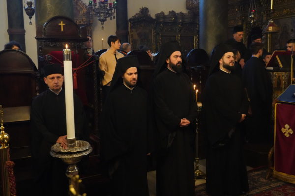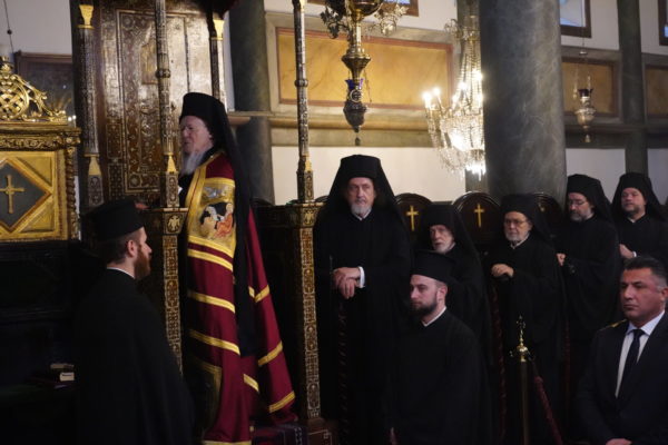Την παραμονή της Πρωτοχρονιάς ο Οικουμενικός Πατριάρχης χοροστάτησε μαζί με τους Σεβ. Μητροπολίτες Γέροντα Χαλκηδόνος κ. Εμμανουήλ, Γέροντα Δέρκων κ. Απόστολο, Γέροντα Πριγκηποννήσων κ. Δημήτριο, Φιλαδελφείας κ. Μελίτωνα, Μύρων κ. Χρυσόστομο, Ικονίου κ. Θεόληπτο, Καλλιουπόλεως και Μαδύτου κ. Στέφανο, Κυδωνιών κ. Αθηναγόρα, Πισιδίας κ. Ιώβ, Σηλυβρίας κ. Μάξιμο, Σαράντα Εκκλησιών κ. Ανδρέα και Προύσης κ. Ιωακείμ, στον Μ. Εσπερινό που τελέστηκε στον Πατριαρχικό Ναό, στον οποίο παρέστησαν συμπροσευχόμενοι οι Θεοφιλ. Επίσκοποι Αλικαρνασσού κ. Αδριανός, Αραβισσού κ. Κασσιανός, Ευδοκιάδος κ. Αμβρόσιος, Τράλλεων κ. Βενιαμίν, Δαφνουσίας κ. Σμάραγδος και Ξανθουπόλεως κ. Παΐσιος, καθώς και οι Πρόξενοι της Ελλάδος και της Ουκρανίας στην Πόλη Ευγεν. κ. Δανάη Βασιλάκη και Εντιμ. κ. Maksim Vdovychenko, και πλήθος πιστών.