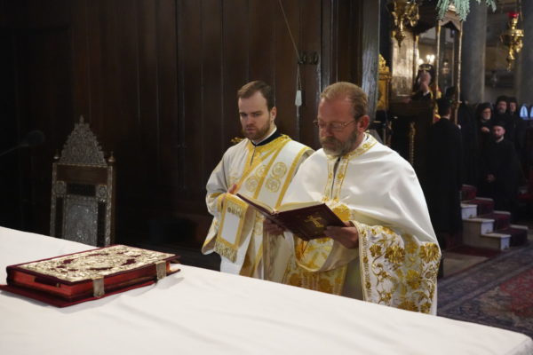 Με τον Παναγιώτατο συγχοροστάτησαν οι Σεβ. Μητροπολίτες Γέρων Χαλκηδόνος κ. Εμμανουήλ, Φιλαδελφείας κ. Μελίτων, Μύρων κ. Χρυσόστομος, Πισιδίας κ. Ιώβ και Προύσης κ. Ιωακείμ, ενώ την Θεία Λειτουργία τέλεσε, κατά την τάξη, ο Πανοσιολ. Μ. Πρωτοσύγκελλος κ. Θεόδωρος.