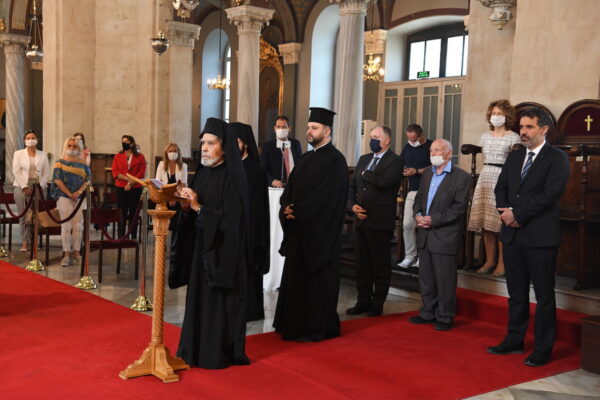 Εκκλησιάστηκαν οι Σεβ. Μητροπολίτες Μυριοφύτου και Περιστάσεως κ. Ειρηναίος, Καλλιουπόλεως και Μαδύτου κ. Στέφανος, ο Θεοφιλ. Επίσκοπος Τράλλεων κ. Βενιαμίν, η Ευγεν. κυρία Γεωργία Σουλτανοπούλου, Γενική Πρόξενος της Ελλάδος στην Πόλη, με τον Πρόξενο κ. Γεώργιο Γαϊτάνη, Άρχοντες Οφφικιάλιοι, Εκπαιδευτικοί και πιστοί από την Πόλη.