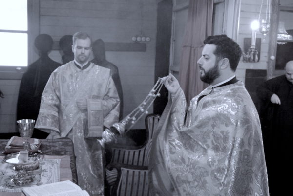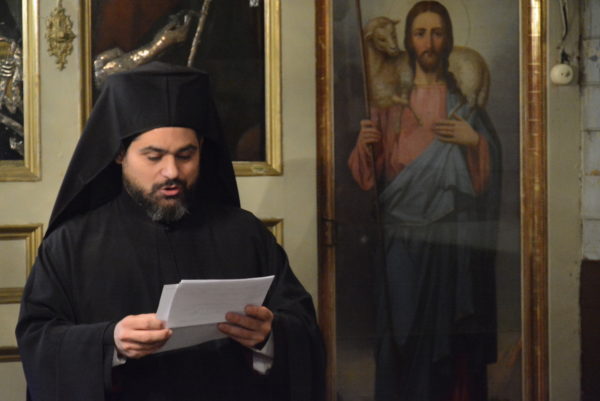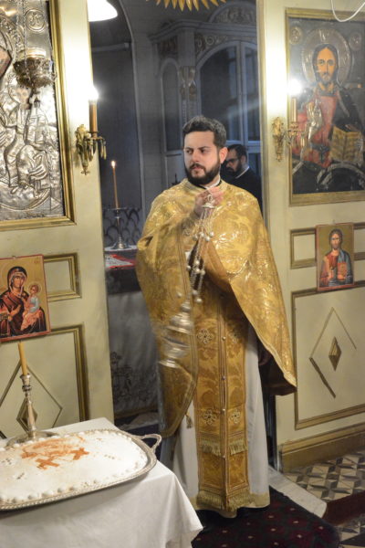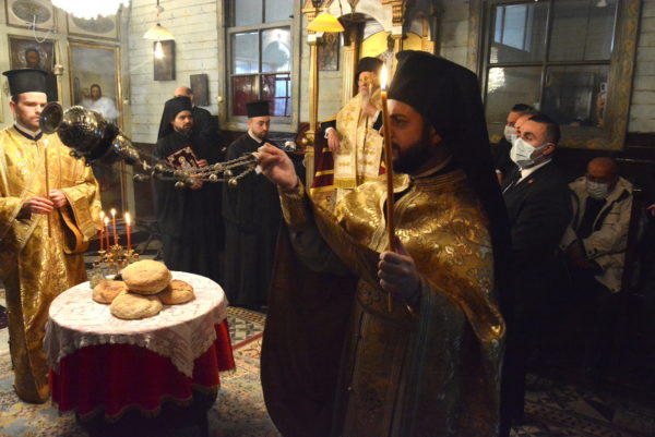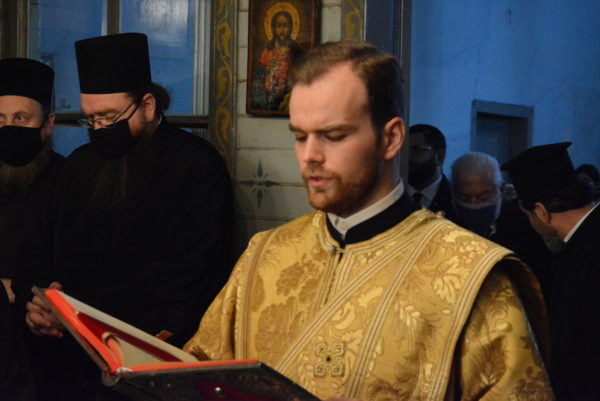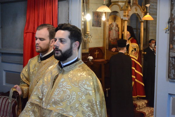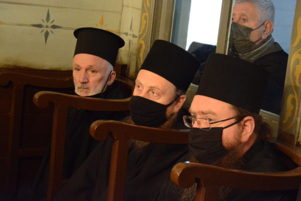 Εκκλησιάστηκαν ο Σεβ. Αρχιεπίσκοπος Ανθηδώνος κ. Νεκτάριος, Επίτροπος του Παναγίου Τάφου στην Πόλη, ο Πανοσιολ. Αρχιμ. κ. Νικάνωρ, Ηγούμενος της Ι. Πατριαρχικής και Σταυροπηγιακής Μονής Αγίας Τριάδος Σπαρμού Ολύμπου, με τον Ιερομ. κ. Βασίλειο, μέλος της Αδελφότητας της Μονής και κατά σάρκα αδελφό του, άλλοι κληρικοί και μοναχοί, και πλήθος πιστών.