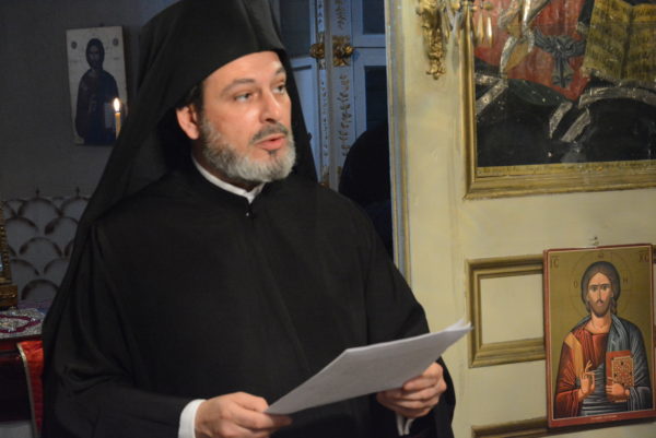 Προηγουμένως, ο Επίσκοπος Αραβισσού, στην προσφώνησή του, καλοσώρισε με θερμούς λόγους τον Παναγιώτατο στην πανηγυρίζουσα Σκήτη.