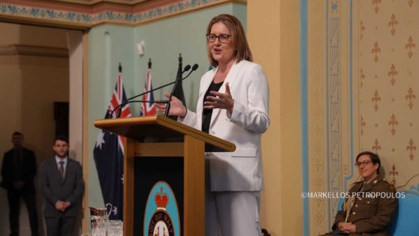 Τον Οικουμενικό Πατριάρχη καλωσόρισαν με θερμούς λόγους η Κυβερνήτρια και η Πρωθυπουργός της Βικτώριας, ενώ ο Παναγιώτατος τούς απηύθυνε εγκάρδιες ευχαριστίες για τη φιλοξενία και την παράθεση της τιμητικής προς το πρόσωπό του Δεξιώσεως. Στο επίκεντρο της Πατριαρχικής ομιλίας ετέθη ο ρόλος της Εκκλησίας στη σύγχρονη κοινωνία.