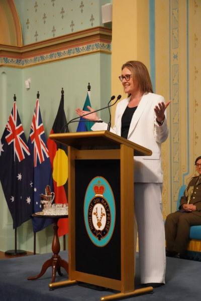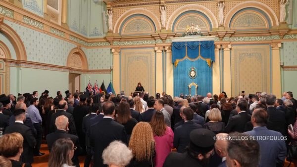 Ακολούθως, σε αίθουσα του Κυβερνείου, παρατέθηκε επίσημη Δεξίωση από την Κυβερνήτρια κ. Gardner, από κοινού με την Πολιτειακή Πρωθυπουργό κ. Jacinta Allan. Στη Δεξίωση παρέστησαν τα μέλη της Πατριαρχικής συνοδείας: οι Σεβασμιώτατοι Μητροπολίτες Ίμβρου και Τενέδου κ. Κύριλλος και Θεσσαλονίκης κ. Φιλόθεος, οι Πανοσιολ. Μέγας Πρωτοσύγκελλος κ. Γρηγόριος, και Μέγας Εκκλησιάρχης κ. Αέτιος, Διευθυντής του Ιδιαιτέρου Πατριαρχικού Γραφείου, ο Ιερολ. Πατριαρχικός Διάκονος κ. Ευλόγιος, Κωδικογραφεύων της Αγίας και Ιεράς Συνόδου, η Οσιωτ. Μοναχή Ιακώβη, Ηγουμένη του Ιερού Ησυχαστηρίου του Τιμίου Προδρόμου Ακριτοχωρίου, οι Εντιμολ. Άρχων Διδάσκαλος του Γένους κ. Κωνσταντίνος Δεληκωσταντής, Διευθυντής του Α´ Πατριαρχικού Γραφείου, και Άρχων Διδάσκαλος της Εκκλησίας κ. Θεόδωρος Γιάγκου, Καθηγητής της Θεολογικής Σχολής του Αριστοτελείου Πανεπιστημίου Θεσσαλονίκης, οι Εντιμ. κ. Νικόλαος – Γεώργιος Παπαχρήστου, Διευθυντής του Πατριαρχικού Γραφείου Τύπου και Επικοινωνίας, κ. Θεμιστοκλής Καρανικόλας, εκ του προσωπικού του Πατριαρχείου, καθώς επίσης οι Σεβασμιώτατοι Μητροπολίτες Δέρβης κ. Ιεζεκιήλ και Σεβαστείας κ. Σεραφείμ, οι Θεοφιλέστατοι Επίσκοποι της Ιεράς Αρχιεπισκοπής Αυστραλίας, εκπρόσωποι άλλων Χριστιανικών Εκκλησιών, ο Πρέσβης της Ελλάδος στην Αυστραλία κ. Σταύρος Βενιζέλος, ο Ύπατος Αρμοστής της Κυπριακής Δημοκρατίας κ. Αντώνιος Σαμμούτης, οι Γενικοί Πρόξενοι της Ελλάδος στη Μελβούρνη κ. Εμμανουήλ Κακαβελάκης και στην Αδελαΐδα κ. Αλεξάνδρα Θεοδωροπούλου, Άρχοντες της Μ.τ.Χ.Ε., εκπρόσωποι του πολιτικού κόσμου σε ομοσπονδιακό και πολιτειακό επίπεδο, και εκπρόσωποι Οργανισμών και Οργανώσεων της Ελληνικής Ομογένειας.