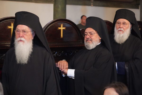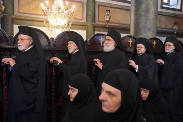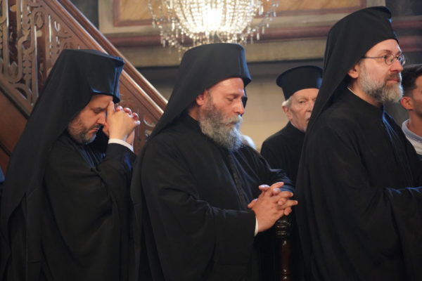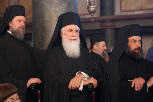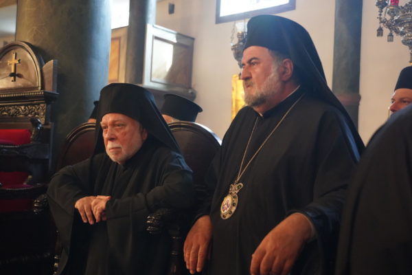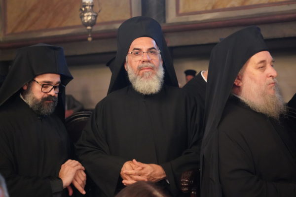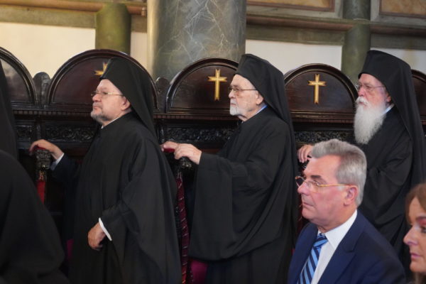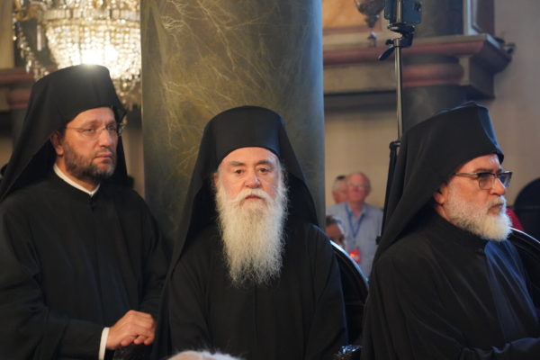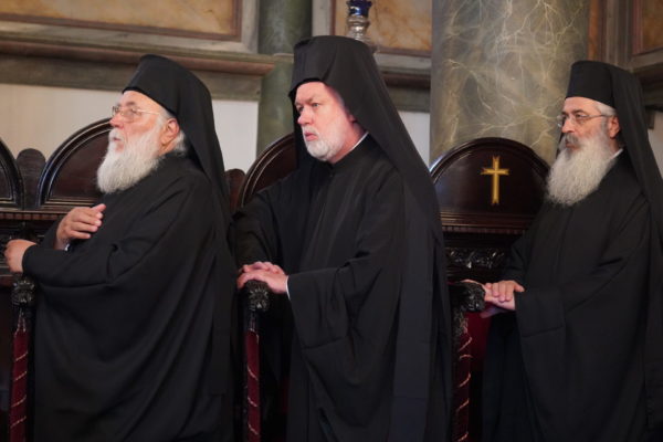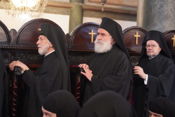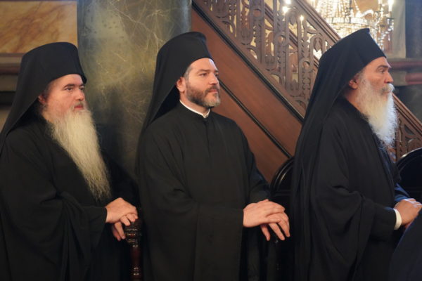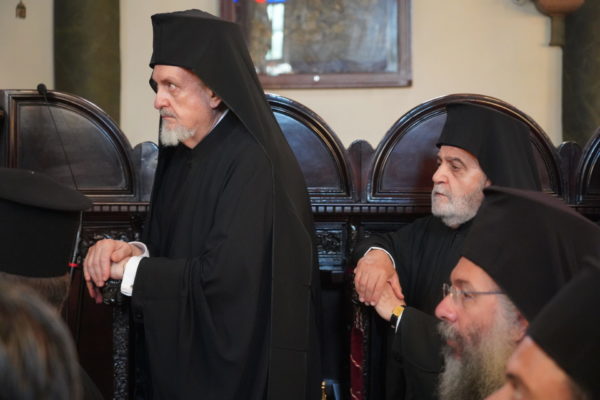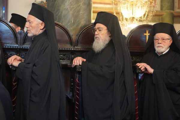 Με τον Παναγιώτατο συγχοροστάτησαν οι Αρχιερείς Σεβασμιώτατοι Γέρων Χαλκηδόνος κ. Εμμανουήλ, Γέρων Δέρκων κ. Απόστολος, Γέρων Πριγκηποννήσων κ. Δημήτριος, Καναδά κ. Σωτήριος, Δωδώνης κ. Χρυσόστομος, Ανέων κ. Μακάριος, Φιλαδελφείας κ. Μελίτων, Ξάνθης κ. Παντελεήμων, Μυριοφύτου και Περιστάσεως κ. Ειρηναίος, Μύρων κ. Χρυσόστομος, Λαοδικείας κ. Θεοδώρητος, Ικονίου κ. Θεόληπτος, Κερκύρας κ. Νεκτάριος, Βελγίου κ. Αθηναγόρας, Αλεξανδρουπόλεως κ. Άνθιμος, Πατρών κ. Χρυσόστομος, Κρήτης κ. Ευγένιος, Κορέας κ. Αμβρόσιος, Κώου και Νισύρου κ. Ναθαναήλ, Ζακύνθου κ. Διονύσιος, Καλλιουπόλεως και Μαδύτου κ. Στέφανος, Πισιδίας κ. Ιώβ, Ιωαννίνων κ. Μάξιμος, Σηλυβρίας κ. Μάξιμος, Αδριανουπόλεως κ. Αμφιλόχιος, Νέας Ιερσέης κ. Απόστολος, Νέας Κρήνης και Καλαμαριάς κ. Ιουστίνος, Ιμβρου και Τενέδου κ. Κύριλλος, Σύμης κ. Χρυσόστομος, Σικάγου κ. Ναθαναήλ, Νέας Ζηλανδίας κ. Μύρων, Λήμνου κ. Ιερόθεος, Θεσσαλονίκης κ. Φιλόθεος, Ρεθύμνης και Αυλοποτάμου κ. Πρόδρομος, Ιρλανδίας κ. Ιάκωβος, Σαράντα Εκκλησιών κ. Ανδρέας, Προύσης κ. Ιωακείμ, και Σελευκείας κ. Θεόδωρος.