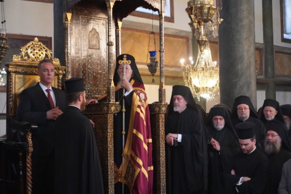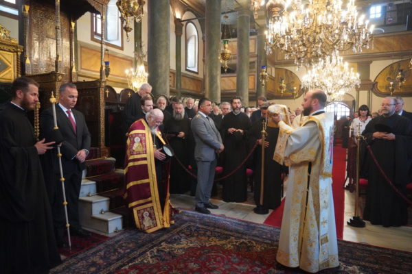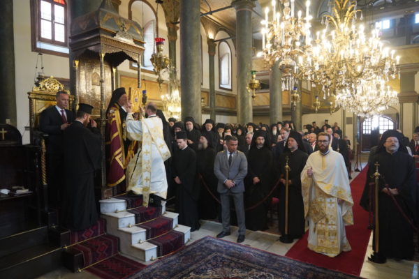 Μετά την Θ. Λειτουργία, ο Παναγιώτατος δέχθηκε στο Πατριαρχικό Γραφείο τις ευχές και εόρτιο δώρο της εν Τουρκία σεβασμίας Ιεραρχίας του Θρόνου, και ακολούθως των κληρικών και λαϊκών μελών της Πατριαρχικής Αυλής υπό τον Πανοσιολ. Μ. Πρωτοσύγκελλο κ. Γρηγόριο, ο οποίος προσφώνησε τον Πατριάρχη αντιφωνήσαντα πατρικώς.