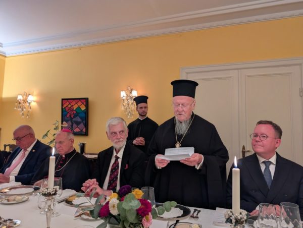 Επίσημο δείπνο παρέθεσε η Πρέσβυς της Ελλάδος στην Στοκχόλμη Αικατερίνη Φουντουλάκη, προς τιμήν του Παναγιωτάτου Οικουμενικού Πατριάρχη κ.κ. Βαρθολομαίου, ο οποίος πραγματοποιεί επίσκεψη στη Σουηδική πρωτεύουσα για να συμμετάσχει στις εκδηλώσεις της «Οικουμενικής Εβδομάδας», που διοργανώνονται από το Χριστιανικό Συμβούλιο Σουηδίας και την εκεί Λουθηρανική Εκκλησία, καθώς και για να τελέσει τα Θυρανοίξια του ανακαινισθέντος Καθεδρικού Ναού Αγίου Γεωργίου.