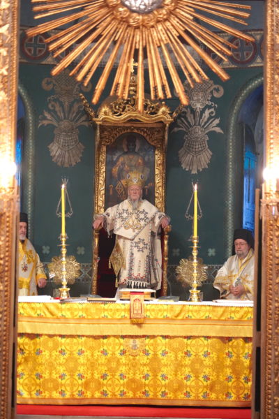 Με τον Παναγιώτατο συλλειτούργησαν οι Σεβ. Μητροπολίτες Γέρων Χαλκηδόνος κ. Εμμανουήλ, Γέρων Πριγκηποννήσων κ. Δημήτριος, Μυριοφύτου και Περιστάσεως κ. Ειρηναίος, Ικονίου κ. Θεόληπτος, Φωκίδος κ. Θεόκτιστος, Σηλυβρίας κ. Μάξιμος, Σαράντα Εκκλησιών κ. Ανδρέας και Πολυανής και Κιλκισίου κ. Βαρθολομαίος.