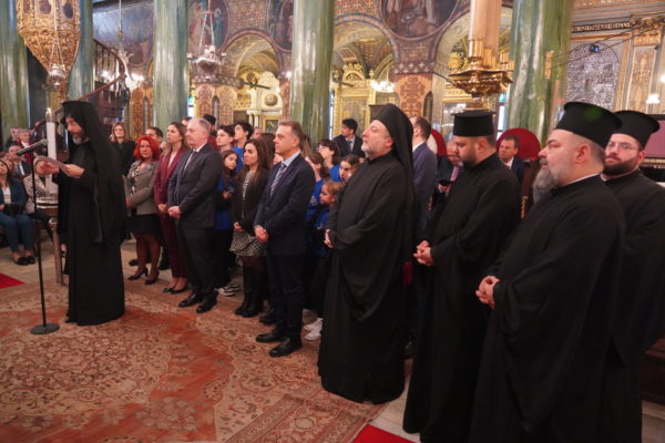 Παρέστησαν συμπροσευχόμενοι οι Σεβ. Μητροπολίτες Μύρων κ. Χρυσόστομος και Καλλιουπόλεως και Μαδύτου κ. Στέφανος, οι Θεοφιλ. Επίσκοποι Τράλλεων κ. Βενιαμίν, Κλαυδιουπόλεως κ. Ιάκωβος και Ξανθουπόλεως κ. Παΐσιος, κληρικοί, Μοναχοί και Μοναχές, Άρχοντες Οφφικιάλιοι του Οικουμενικού Θρόνου, ο Εξοχ. Πρέσβης κ. Κωνσταντίνος Κούτρας, Γενικός Πρόξενος της Ελλάδος στην Πόλη, οι Ελλογιμ. κύριοι Χρήστος Καραγιάννης, Αντιπρύτανης του Πανεπιστημίου Αθηνών, και Εμμανουήλ Καραγεωργούδης, νέος Κοσμήτορας της Θεολογικής Σχολής του ιδίου Πανεπιστημίου, Καθηγητές και μαθητές του Ζωγραφείου Λυκείου υπό τον Διευθυντή του Εντιμολ. κ. Ιωάννη Δεμιρτζόγλου, καθώς και όμιλος παλαιών αποφοίτων του ιστορικού αυτού εκπαιδευτικού Ιδρύματος της Ομογενείας, και πλήθος πιστών από την Πόλη και προσκυνητών από το εξωτερικό.