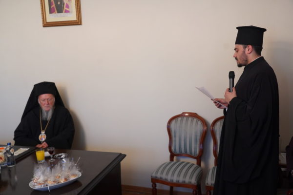 Στη συνέχεια παρετέθη δεξίωση κατά την οποία ο νέος διάκονος Ιερολ. κ. Ανατόλιος πραγματοποίησε την ομιλία της χειροτονίας του, εκφράζοντας την άπειρη υιική ευγνωμοσύνη του προς τον Παναγιώτατο για την ένταξή του στον κλήρο της Πατριαρχικής Αυλής.