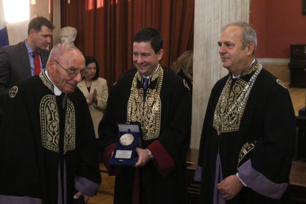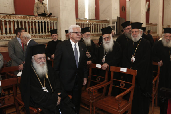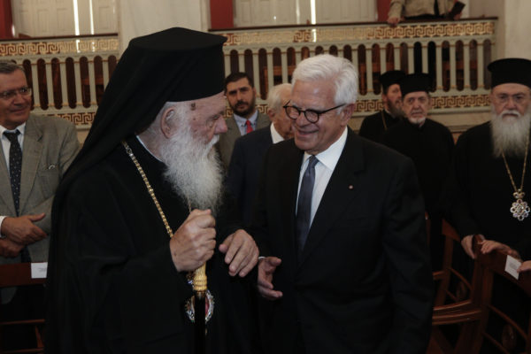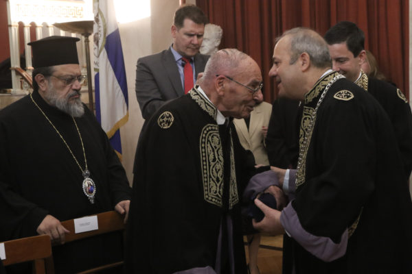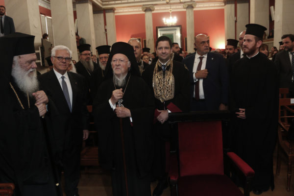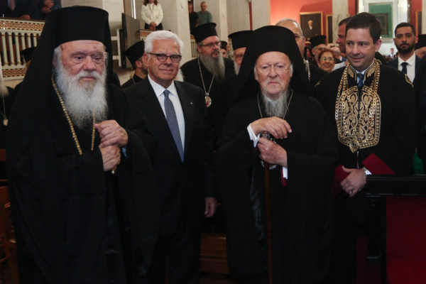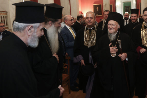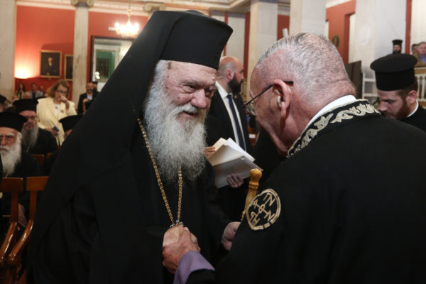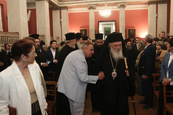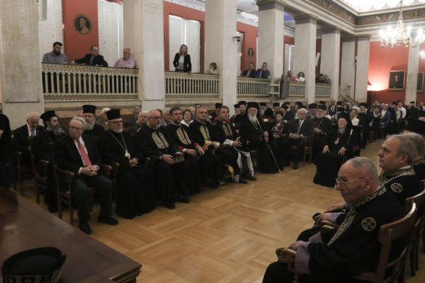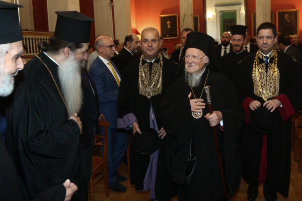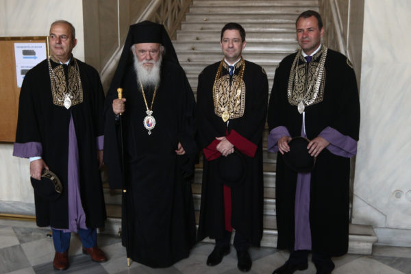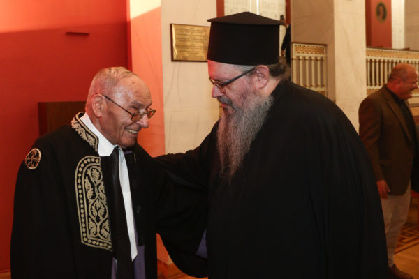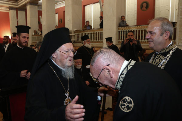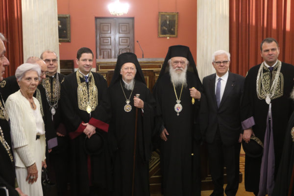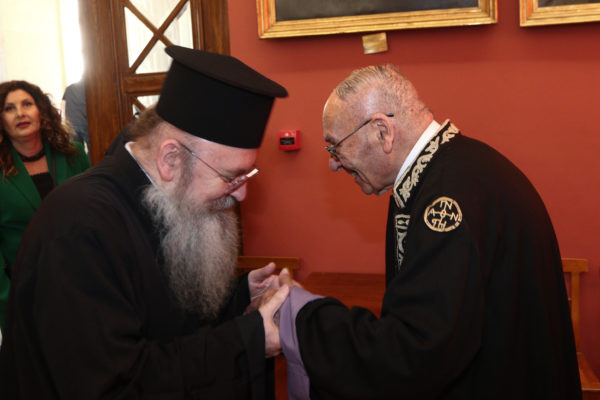 Οικουμενικός Πατριάρχης και Αρχιεπίσκοπος Ιερώνυμος στην αναγόρευση του Ομοτίμου Καθηγητή Βλάσιου Φειδά σε Επίτιμο Καθηγητή του ΕΚΠΑ