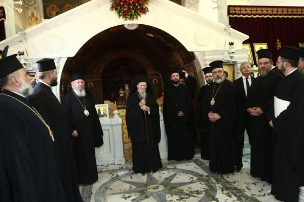 Ο Πατριάρχης προσκύνησε στον ιερό ναό κι αμέσως μετά κατευθύνθηκαν προς το Θεολογικό Οικοτροφείο, όπου τον υποδέχθηκε ο Αρχιεπίσκοπος και οι φοιτητές.