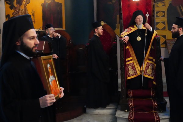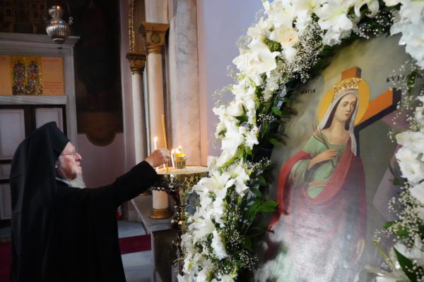 “Οι Άγιοι μας είναι η πράξη και η εφαρμογή του Ευαγγελίου”, τόνισε από την πανηγυρίζοντα ναό της Αγίας Κυριακής Κοντοσκαλίου ο Οικουμενικός Πατριάρχης κ.κ. Βαρθολομαίος ο οποίος χοροστάτησε κατά τη σημερινή Θεία Λειτουργία που τελέστηκε επί τη μνήμη της Αγίας Μεγαλομάρτυρος Κυριακής, αναφερόμενος, με αφορμή την εορτή, στη διαχρονική προσφορά της χριστιανής γυναίκας στο έργο της Εκκλησίας, μίλησε για το μαρτύριο της Αγίας.