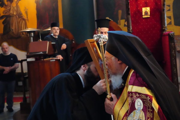 Καλωσορίζοντας τον Μητροπολίτη Κιτίου κ. Νεκτάριο, οποίος βρίσκεται στην Κωνσταντινούπολη με πολυπληθή όμιλο προσκυνητών, ο Οικουμενικός Πατριάρχης χαιρέτισε στο πρόσωπό του ολόκληρη την αδελφή Εκκλησία της Κύπρου με την οποία συνδέουν ισχυροί δεσμοί αιώνων το Σεπτό Κέντρο της Ορθοδοξίας. Ο Παναγιώτατος μίλησε ακόμη για τους κοινούς αγώνες σήμερα που καταβάλουν Κωνσταντινούπολη και Κύπρος για να διατηρήσουν ανόθευτη και υγιή την εκκλησιολογία η οποία βάλλεται ποικιλοτρόπως στον βωμό πολιτικών επιδιώξεων και στρατηγικών σχεδιασμών.