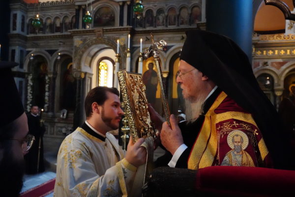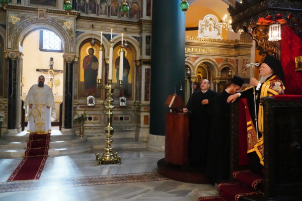 Στην συνέχεια ο Οικουμενικός Πατριάρχης αναφέρθηκε στον περικαλλή ναό της Αγίας Κυριακής Κοντοσκαλίου και ευχαρίστησε άπαντες όσους εργάζονται για την ευπρέπεια του ναού. Ακολούθως ευχαρίστησε τους προσκυνητές που προσήλθαν από διάφορα μέρη του κόσμου στη σημερινή πανήγυρη. Τέλος καλωσόρισε στην Βασιλίδα των πόλεων, την πόλη του Ακαθίστου Ύμνου και της Σοφίας Του Θεού, τον Μητροπολίτη Κιτίου κ. Νεκτάριο ο οποίος αφίχθη χθες από την αγιοτόκο Κύπρο με πολυπληθή όμιλο προσκυνητών.