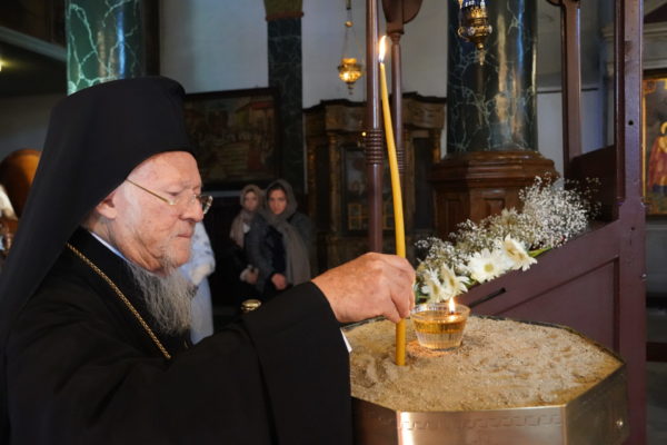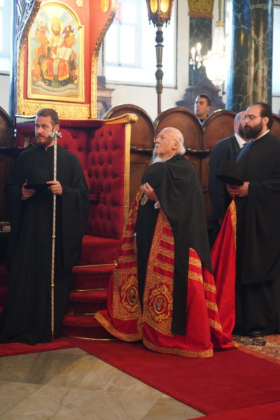 O Παναγιώτατος συνεχάρη “τον καλόν, άξιον και αφοσιωμένον Βοηθόν Επίσκοπόν μας και Επόπτην της Περιφερείας Φαναρίου – Κερατίου Κόλπου Θεοφιλέστατον άγιον Αλικαρνασσού κ. Αδριανόν”, καθώς και τον εφημέριο του Ναού Αιδεσιμ. Πρεσβύτερο κ. Αθανάσιο Μαμάση, και την υπό την προεδρία του Εντιμ. κ. Νικολάου Καλαμάρη Εκκλησιαστική Επιτροπή της Κοινότητος για το επιτελούμενο αποτελεσματικό τους έργο. Στη συνέχεια της ομιλίας του απευθύνθηκε στους προσκυνητές από το εξωτερικό: