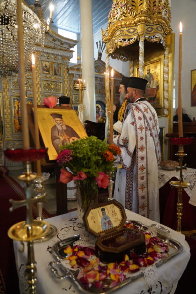 Στο τέλος, ο Παναγιώτατος καλωσόρισε με θερμούς λόγους τον Μητροπολίτη Πατρών, τονίζοντας ότι η παρουσία του στο νησί είναι αιτία χαράς, και χαρακτήρισε μεγάλη ευλογία για τον λαό της Ίμβρου την παράδοση προς την τοπική Εκκλησία αποτμήματος του λειψάνου του νεοφανούς Αγίου.