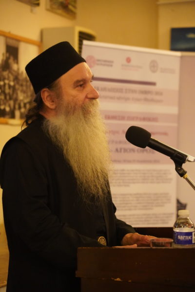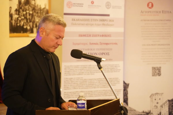 Στο πλαίσιο της εκδηλώσεως εκτέθηκαν υδατογραφίες των 20 Ι. Μονών του Αγίου Όρους, που φιλοτέχνησε ο Ιερομόναχος Λουκάς Ξενοφωντινός, και προβλήθηκε το ντοκιμαντέρ “Ιερή Τέχνη” του Πάνου Καρκανεβάτου. Την εκδήλωση παρουσίασαν ο επιχώριος Μητροπολίτης και ο Διευθυντής της Αγιορειτικής Εστίας Εντιμ. κ. Αναστάσιος Ντούρος. Σε σύντομο χαιρετισμό του, στο τέλος της εκδηλώσεως, ο Παναγιώτατος συνεχάρη τους δημιουργούς και όλους όσοι συνέβαλαν για την πραγματοποίησή της.