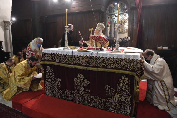 Μετά την Απόλυση ο Παναγιώτατος χειροθέτησε τον νέο Πρεσβύτερο στο οφφίκιο του Μ. Συγκέλλου της Αγίας του Χριστού Μεγάλης Εκκλησίας.