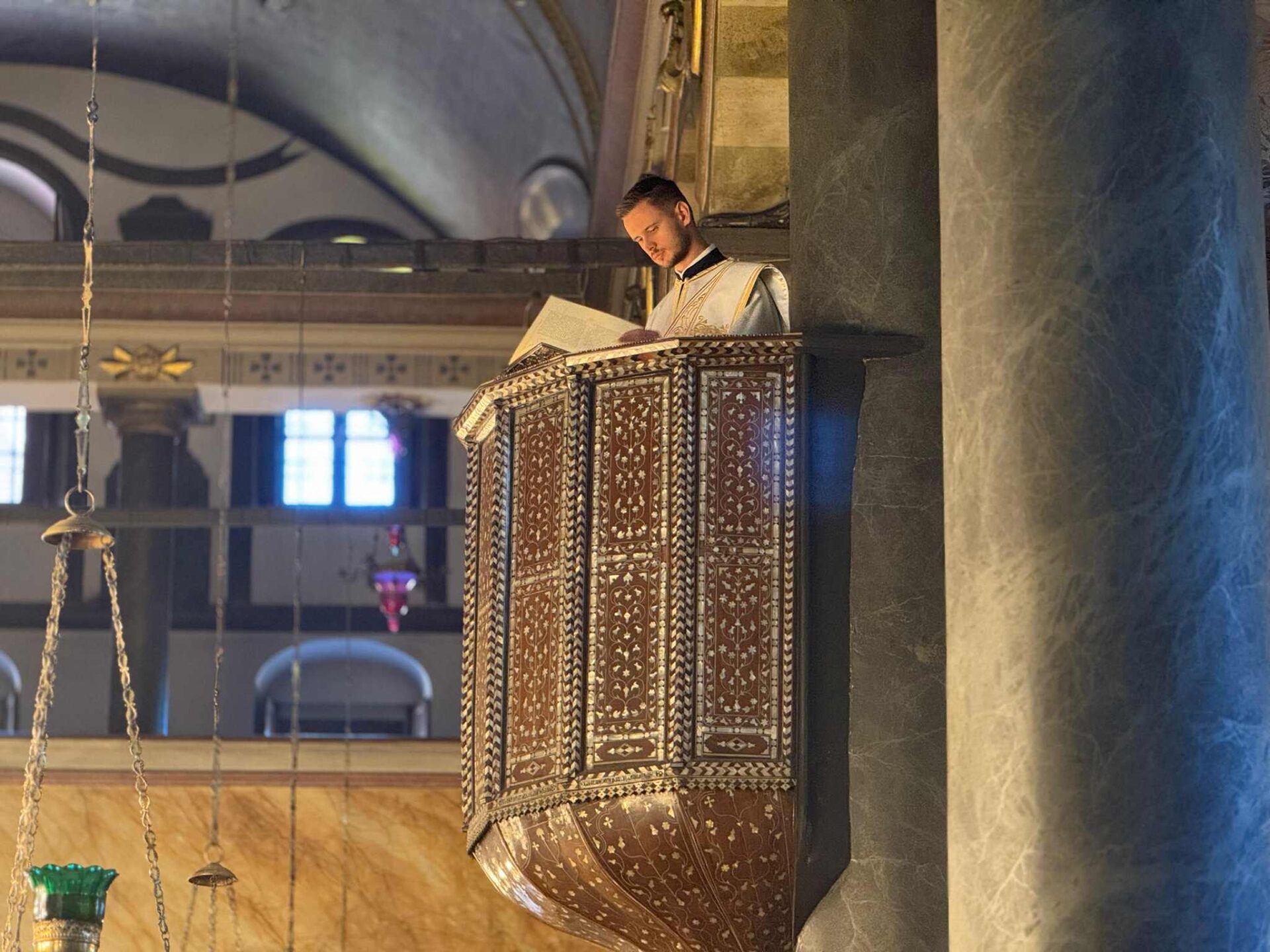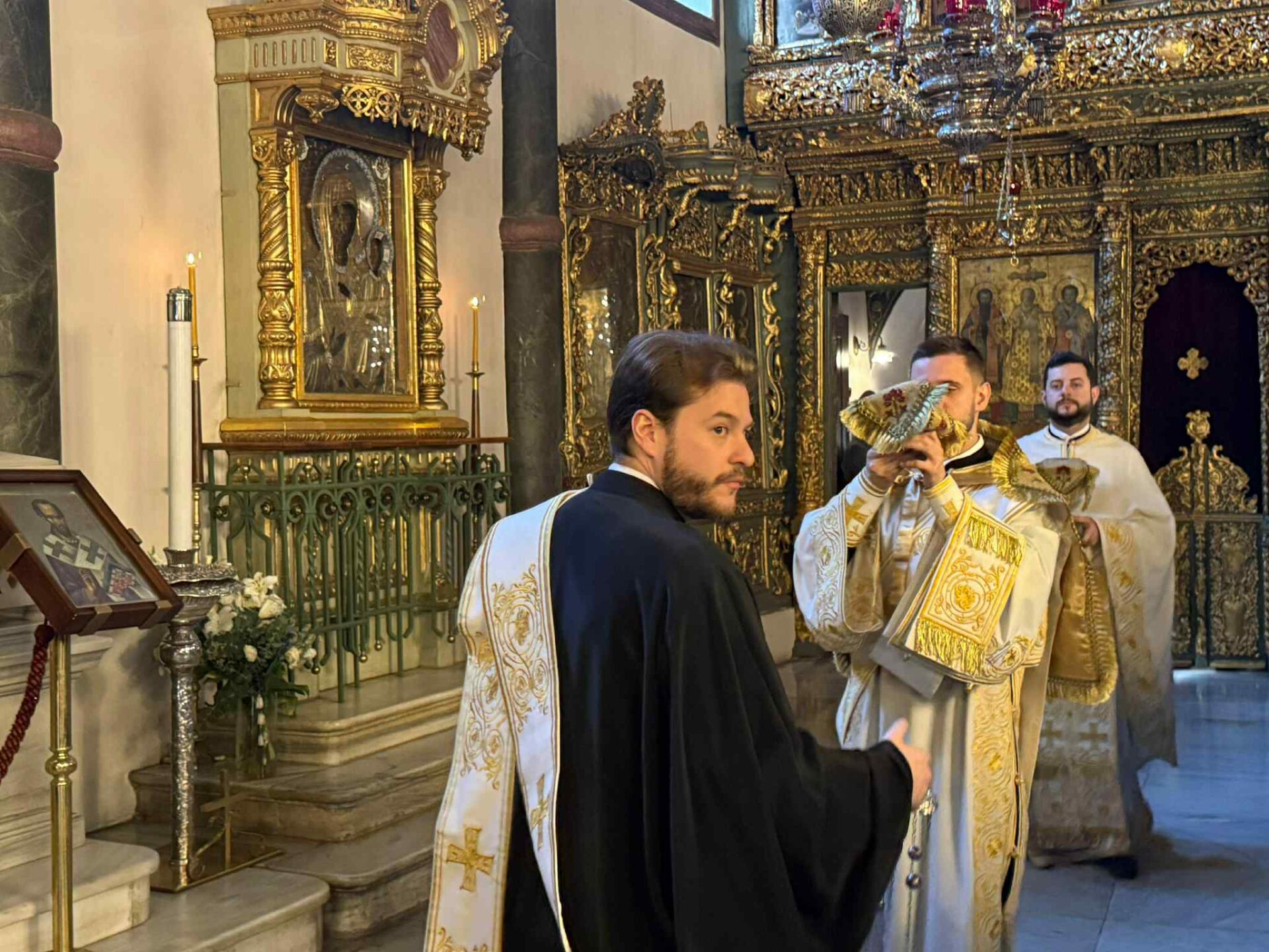 Εκκλησιάστηκαν οι Σεβ. Αρχιερείς Γέρων Χαλκηδόνος κ. Εμμανουήλ, Κρήτης κ. Ευγένιος, Πέτρας και Χερρονήσου κ. Γεράσιμος, και Σελευκείας κ. Θεόδωρος, ο Σεβ. Καρδινάλιος κ. Jean-Marc Aveline, Αρχιεπίσκοπος Μασσαλίας και Πρόεδρος της Διάσκεψης των ΡΚαθολικών Επισκόπων της Γαλλίας με όμιλο κληρικών και λαϊκών προσκυνητών, που συμμετέχουν στην Πρωτοβουλία για την ειρήνη “Οδύσσεια MED25”, πολυμελής όμιλος προσκυνητών από τη Λευκωσία της Κύπρου υπό τον Αιδεσιμ. Πρεσβύτερο κ. Δημήτριο Μακρή, ο Εντιμ. κ. Roman Nedilskyi, Γενικός Πρόξενος της Ουκρανίας στην Πόλη, μαζί με όμιλο γυναικών από την Ουκρανία, συζύγων ή συγγενών πολιτών που κρατούνται ως αιχμάλωτοι πολέμου, και άλλοι πιστοί από την Πόλη και το εξωτερικό.