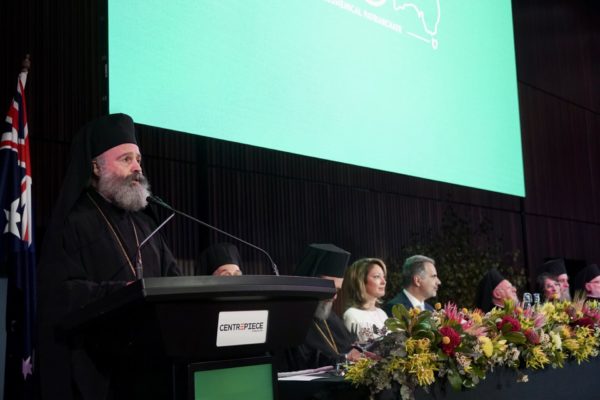 Ἡ ἀποψινή ἐπετειακή καί χαρμόσυνος σύναξις εἶναι ἀφιερωμένη εἰς τήν συμπλήρωσιν αἰῶνος ζωῆς καί μαρτυρίας τῆς Ἱερᾶς Ἀρχιεπισκοπῆς Αὐστραλίας. Ἡ ἐπέτειος αὐτή εἶναι δικαίως ἀφορμή ἐγκαυχήσεως ἐν Κυρίῳ δι᾽ ὅσα ἐπετεύχθησαν, εὐδοκίᾳ καί χάριτι Θεοῦ, ἀλλά καί μέ τήν θυσιαστικήν συμβολήν τῶν θεοπρεπῶς καί χριστοτερπῶς Ἀρχιερατευσάντων Χριστοφόρου, Τιμοθέου, Θεοφυλάκτου, Ἰεζεκιήλ καί Στυλιανοῦ, τῶν ἀειμνήστων Μητροπολιτῶν καί Ἀρχιεπισκόπων, τῶν λοιπῶν μελῶν τοῦ ἱεροῦ κλήρου καί διά τῆς ἀπροϋποθέτου ἀφοσιώσεως εἰς τήν Μητέρα Ἐκκλησίαν τῶν ἀναριθμήτων πιστῶν.