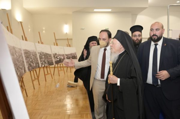 Ο Οικουμενικός Πατριάρχης, συνοδευόμενος από τον Σεβασμιώτατο Μητροπολίτη Νέας Κρήνης και Καλαμαριάς, κ. Ιουστίνο, ξεναγήθηκε στην έκθεση από τον κ. Δαρδαμανέλη, τον Πρόεδρο του Μουσείου Φωτογραφίας, Παύλο Καλεμκερή και τον Πρόεδρο του Ι.Α.Π.Ε, Ανανία Τσιραμπίδη. Παρόντες ο Υφυπουργός Εσωτερικών για θέματα Μακεδονίας- Θράκης, Σταύρος Καλαφάτης, η Γενική Γραμματέας του Δήμου Καλαμαριάς, Ελένη Φύκα, ο Πρόεδρος του Δημοτικού Συμβουλίου, Δημήτρης Κυρατζής, βουλευτές της Α΄ Θεσσαλονίκης, Κώστας Γκιουλέκας, Δημήτρης Κούβελας, Γιάννης Αμανατίδης και Χρήστος Γιαννούλης, εκπρόσωπος του Γ΄Σώματος Στρατού, Αντιδήμαρχοι και Δημοτικοί Σύμβουλοι.
